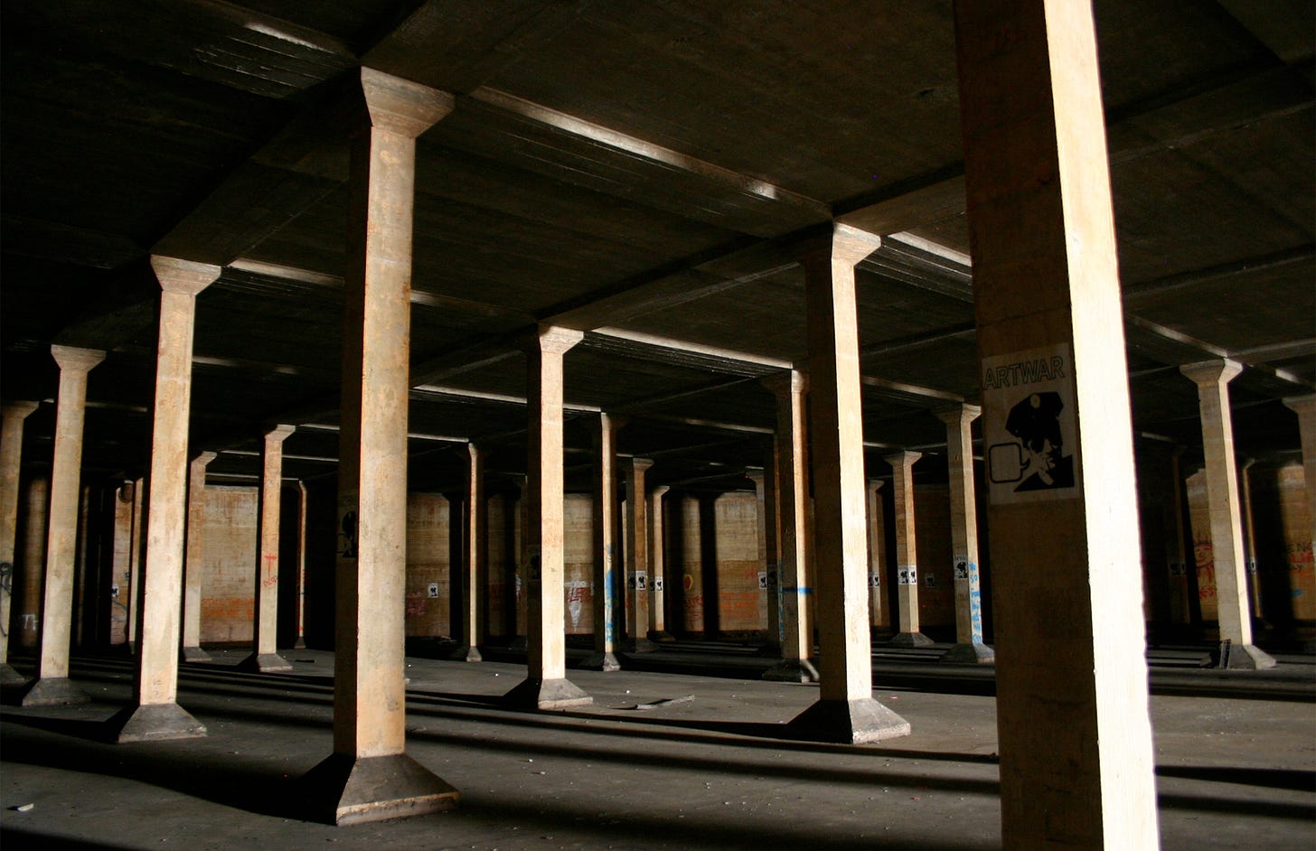 It's a sensibility that others were finding their way toward independently. In 2000, a Montreal artist duo called [The User] - Thomas McIntosh and Emmanuel Madan - turned Silo #5, an abandoned grain elevator in the city's Old Port, into something similar: a communal instrument, open to anyone. They wired it with microphones and speakers, gave it a phone number (+1 514 844 5555), and let the world play it. The structure had a reverberation time of over twenty seconds - the building doing to sound what the cistern did, but from a call box. Hundreds of thousands of people dialled in. (Thanks to Teamy for flagging this after reading this piece for me. Note to self OUT LOUD, research an extended piece on acoustic spaces as instruments)