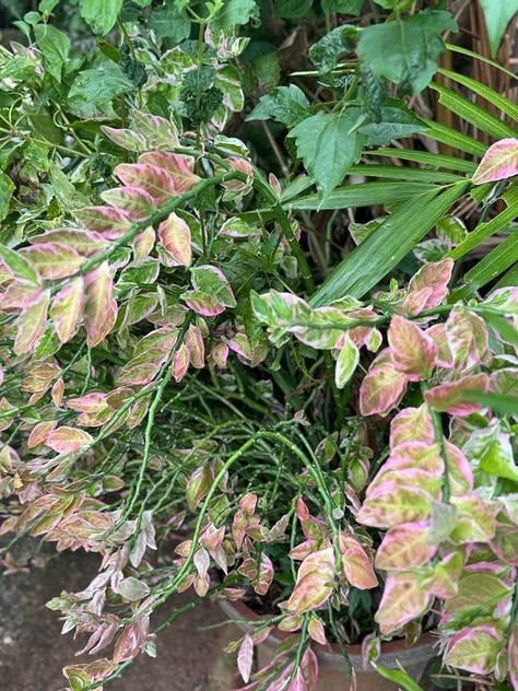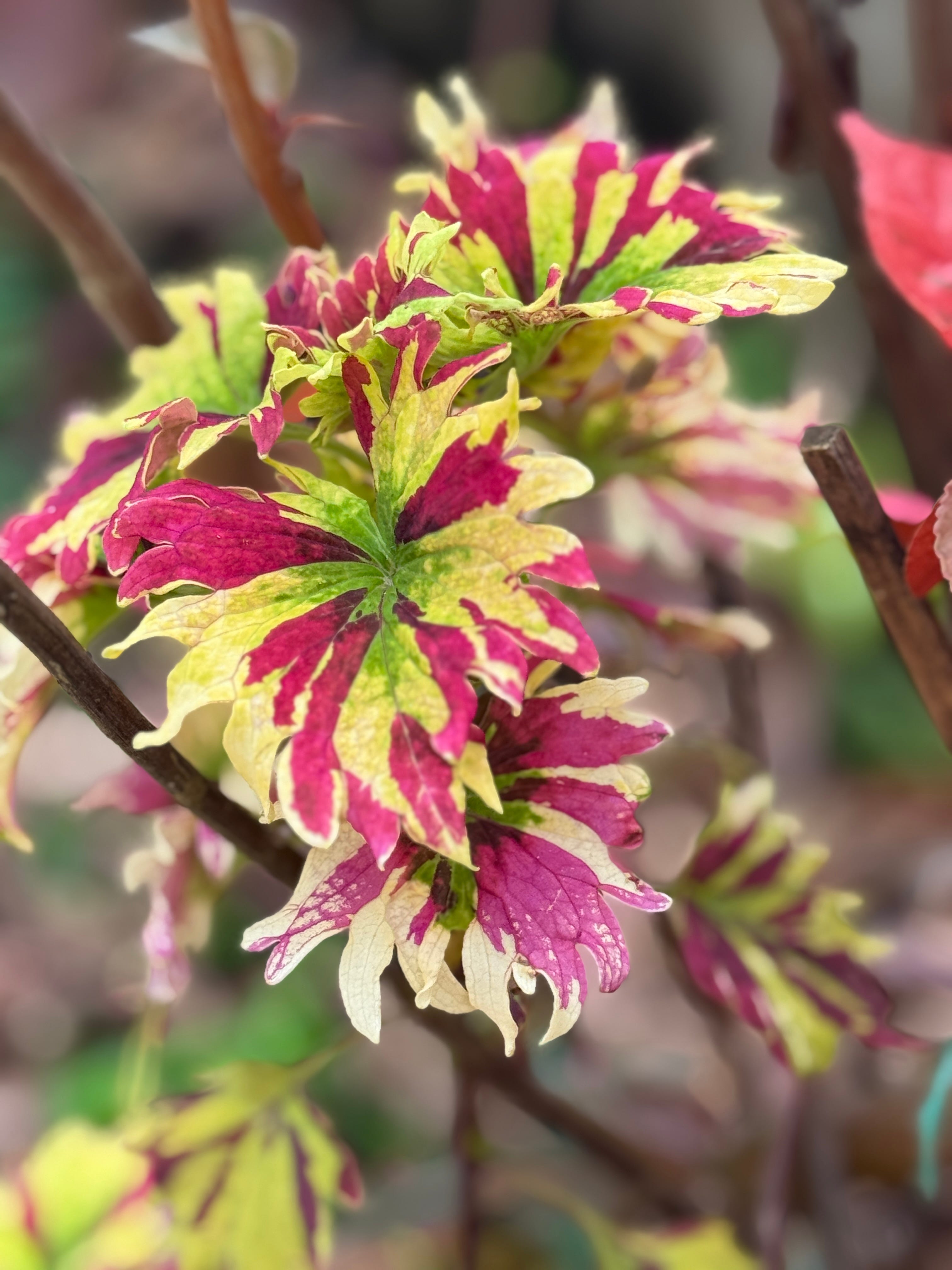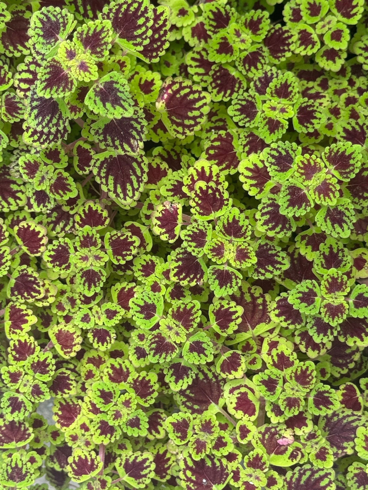 The variety is insane. Some have almost pure white leaves with just a hint of green veining. Others are deep burgundy with pink splashes. There are ones with such intricate patterns you could stare at a single leaf for ages trying to work out how nature managed to pull off the combination. Check the one above, it looks a bit like an early video game graphics.