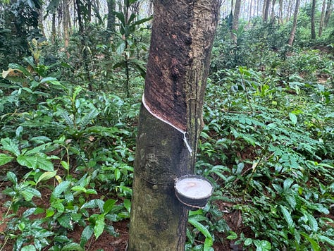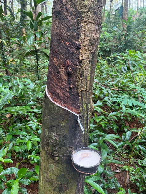 Watching someone do this with the easy confidence of muscle memory was fascinating. They move through the plantation methodically, checking cups, making new cuts, and generally maintaining this relationship between human industry and plant biology that’s been going on for over a century.