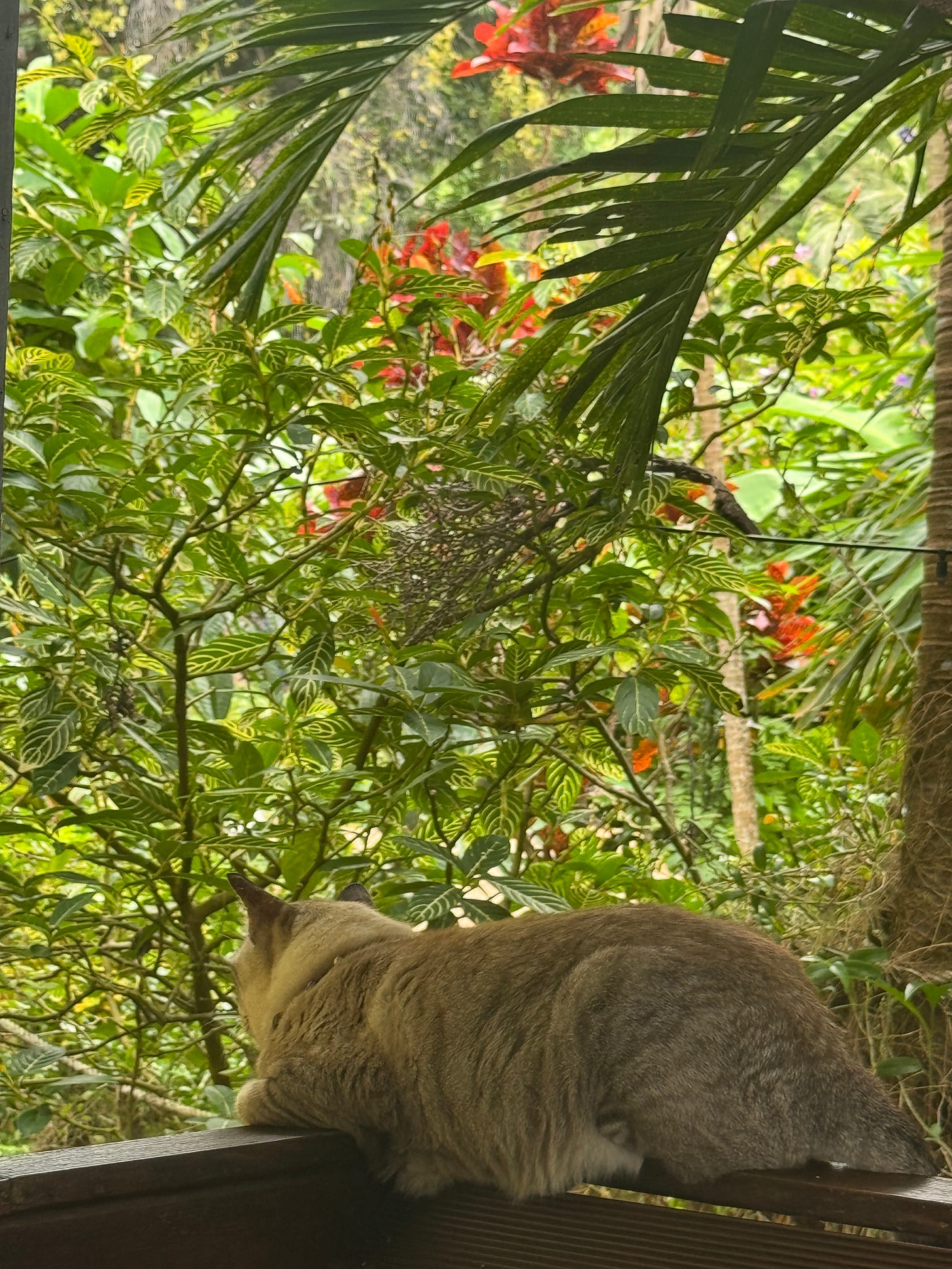 Massive respect to the island and its people for maintaining this particular kind of paradise. Also shout out to whoever makes those caladiums grow so perfectly, the person who tapped rubber trees with such precision, and obviously to all the temple cats living their best lives.