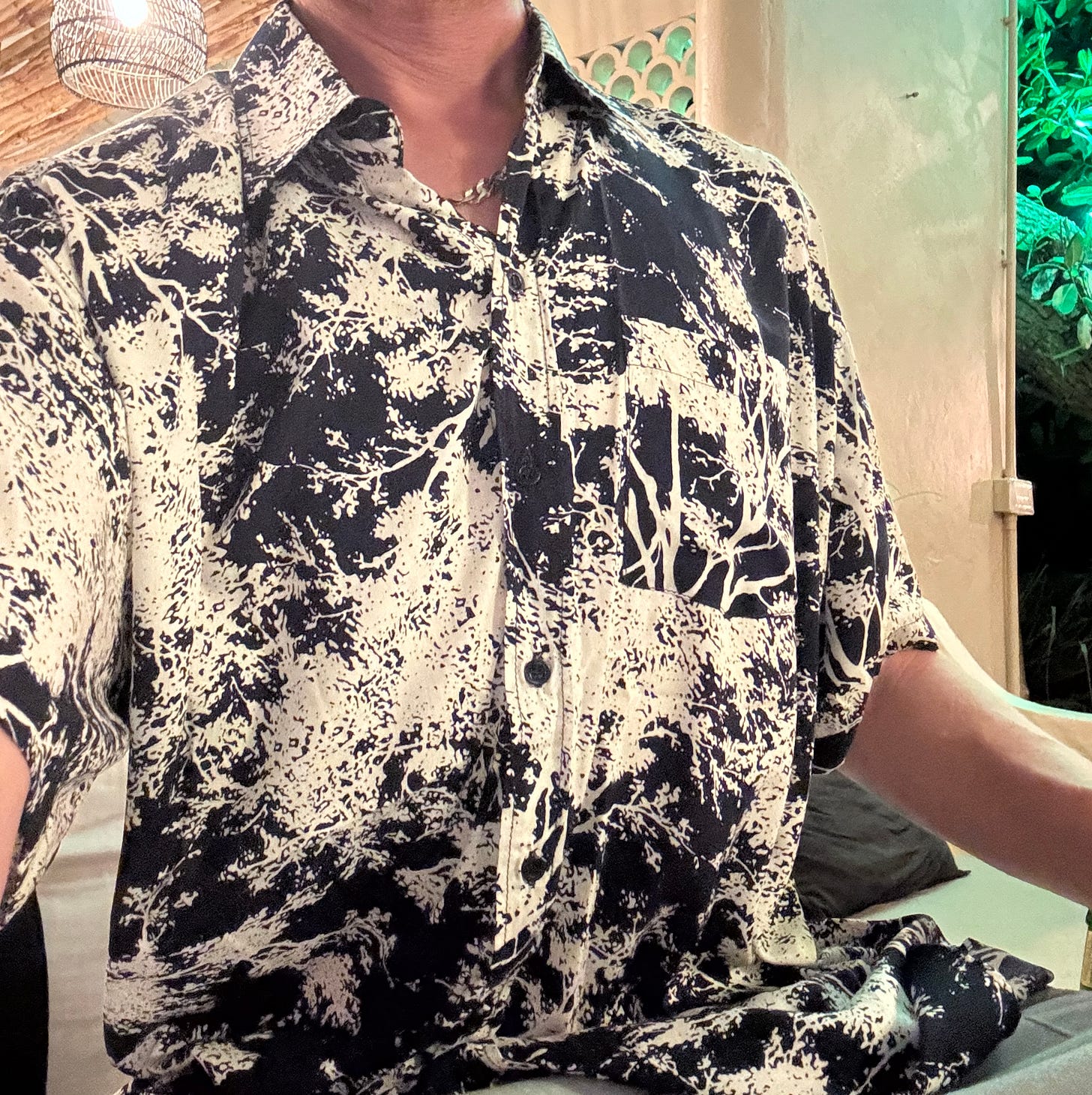 Island markets are the best. This one had the usual tourist stuff, but also all the things locals actually need and in among all that, this absolute gem of a shirt covered in trees.