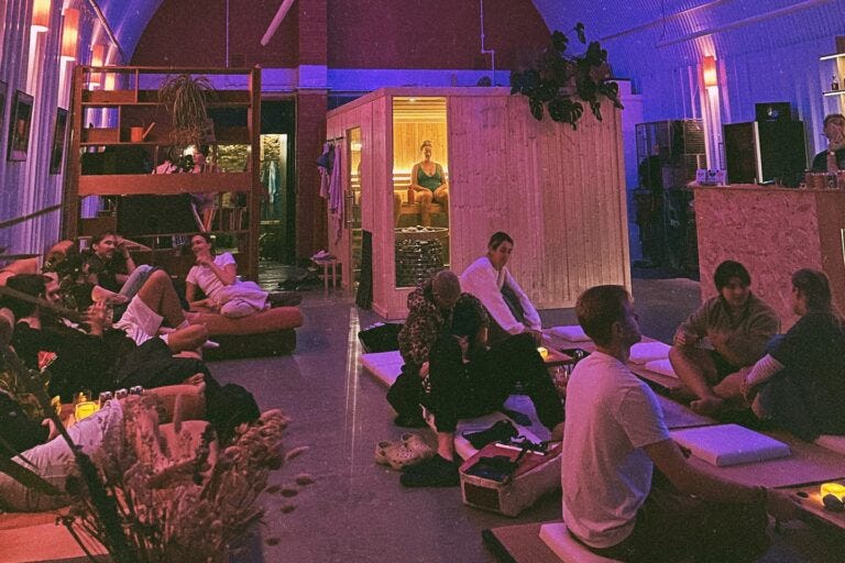 Thirty years on, that spirit’s having a comeback. Events like London’s A Loose Ting are bringing back the bedding and the hushed reverence, while Berlin’s Overflow is going full sensory overload with vibrating mattresses, fountains, and harpists. New York’s Planetarium gatherings have people mostly horizontal, inspired by psychedelic therapy sessions. There’s even an ambient sauna in South London you might have come across via the wonder of Music To Watch Seeds Grow By’s recent takeover.